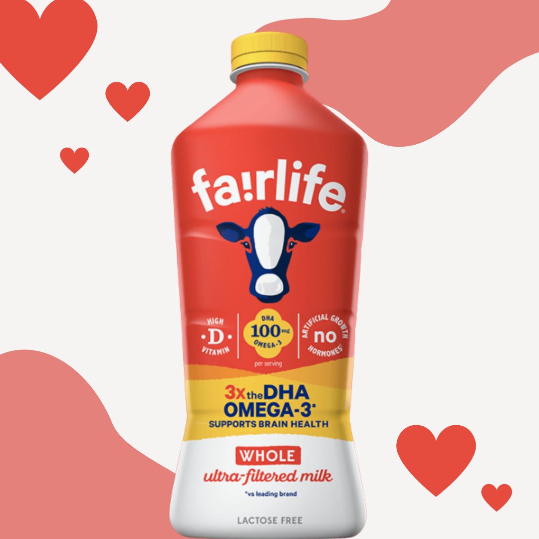 DHA Whole Milk | fairlife Ultra-Filtered Milk with DHA Omega-3 fairlife® Whole Ultra-Filtered Milk with DHA With 3x the DHA vs the leading brand, high Vitamin D, and no artificial growth hormones, fairlife® ultra-filtered milk with DHA is a delicious way to nourish healthy brains. Available In 52oz Buy Now Find a Store Nutritional highlights 100mg DHA per serving HIGH Vitamin D NO Artificial Growth
