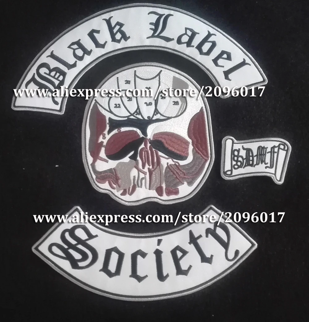 Black Label Society Patch Biker Back for Mens Vest Clothing Skull Head Rocker Patches Rock and Punk Patch Embroidery 4pcs as Set