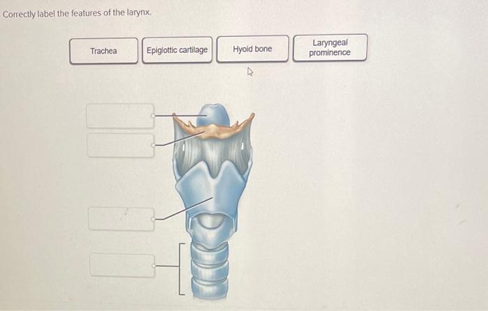 CHAPTER 16 , 17, 18 Flashcards | Quizlet Study with Quizlet and memorize flashcards containing terms like The formation of lymph increases as a result of, Drop each label into the appropriate box, indicating which class of immunoglobulin is being described. Some labels are used more than once., Class I MHC antigens are found in the membranes of Class II MHC antigens are found in the membranes of and more. Solved Correctly label the features of the larynx. Arytenoid - Chegg Expert Answer 100% (10 ratings) 1. Thyrohyoid ligament 2. Thyroi … View the full answer Transcribed image text: Correctly label the features of the larynx. Arytenoid cartilage Cricotracheal ligament Cricoid cartilage Thyroid cartilage Corniculate cartilage Thyrohyoid ligament Tracheal cartliage 4 Reset Zoom Previous question Next question AHCDW21Notes19.pdf - 19. Award: 10.00 points Problems?... Correctly label the features of the larynx. Explanation: The superior opening of the larynx is guarded by a flap of tissue called the epiglottis. The framework of the larynx consists of ninecartilages. The first three are solitary and relatively large.