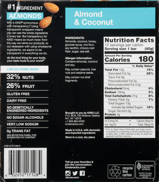 KIND Fruit & Nut Bars Almond & Coconut Gluten Free - 12 ct ...