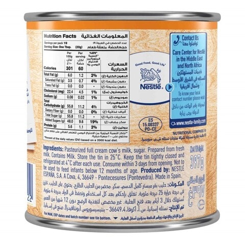 Sweetened condensed milk nutrition label