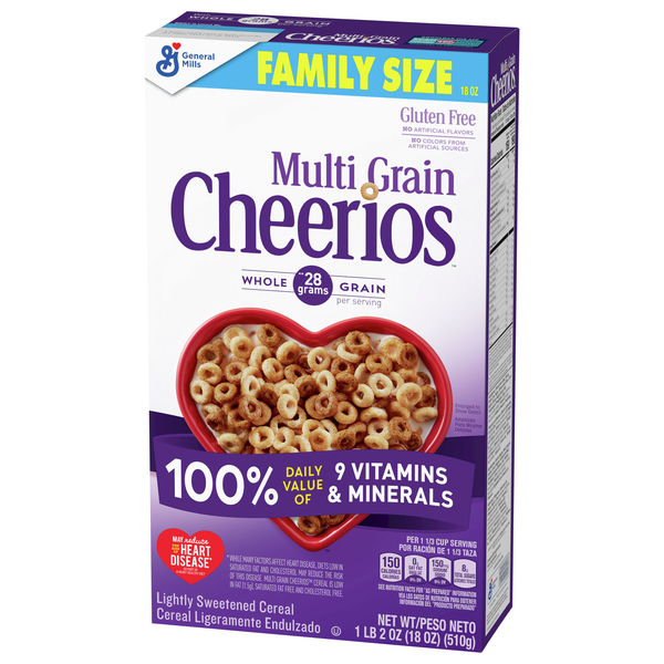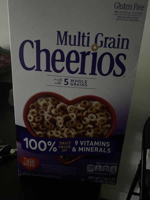 Nutrition Facts for Cheerios Multi Grain Cereal • MyFoodDiary® Cheerios Multi Grain Cereal Milk not included. Nutrition Facts. Serving Size. cups. 1 1/3 cups = 39g. Amount Per Serving. 150. Calories % Daily Value* 2%. ... Cheerios Honey Nut Medley Crunch Cereal Milk not included. 1 cup (43g) Log food: Cheerios Cinnamon Oat Crunch Cereal Milk not included. 1 cup (54g) Cereal (General Mills Cheerios Multigrain) nutrition facts and analysis. Cereal (General Mills Cheerios Multigrain) nutrition facts and analysis. Add to diary Add to favorites Cereal (General Mills Cheerios Multigrain) Select portion size: Share by URL Add to comparison ⓘ Add to recipe ⓘ Download spreadsheet (CSV) Print page 🖶 Badges: high sugar Did you find this website helpful? Multi Grain Cheerios Heart Healthy Cereal, Gluten Free Multigrain ... Serve this multigrain toasted oat cereal for breakfast, make it into cereal bars, prepare delicious snacks for toddlers or add it to your favorite trail mix. This 18-ounce Multi Grain Cheerios cereal box contains 13 servings of whole grain cereal that can be stored conveniently at home for a quick breakfast food or heart healthy snacks.