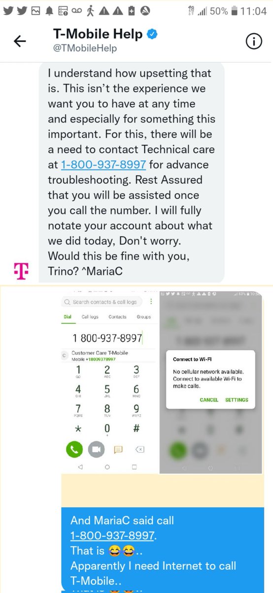 T-Mobile on Twitter: "@BrittneyValair Give us a call 18009378997 ... We always want you to be able to utilize your service as needed. Send a DM so we can work out a solution for you as soon as possible. ^CharlesOpacki. Who called you from +18009378997 (8009378997): 2 reviews We have 2 user reviews for the phone number +18009378997 / 8009378997 (landline phone, United States, non-geographic, Toll-Free). The number has mostly ... 8009378997 calls! 7 Ratings +18009378997 - tellows TMobile 8009378997 / +18009378997 ... tellows score for +18009378997 ... Phone number +18009378997 from Toll-free telephone number tagged as Trustworthy ... T-Mobile Customer Care | No barriers—get help from real ... How to contact your Team of Experts: Call us. Simply dial 611 from your T-Mobile phone or use the T-Mobile app to give us a call. Message us. Send a message to your Team of Experts in the T-Mobile app, My T-Mobile, or Apple Business Chat. We'll call you. Schedule a time in the T-Mobile app or My T-Mobile to have your team call you. Get the app.