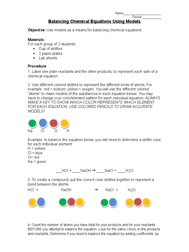 Laebling A Chemical Equation Part I - YouTube Aug 5, 2012 ... Labeling chemical equations and identifing reactants, yield and products. 4.1: Writing and Balancing Chemical Equations Begin by identifying formulas for the reactants and products and arranging them properly in chemical equation form: CO 2(aq) + NaOH(aq) → Na 2CO 3(aq) + H 2O(l) Balance is achieved easily in this case by changing the coefficient for NaOH to 2, resulting in the molecular equation for this reaction: CO 2(aq) + 2 NaOH(aq) → Na 2CO 3(aq) + H 2O(l)